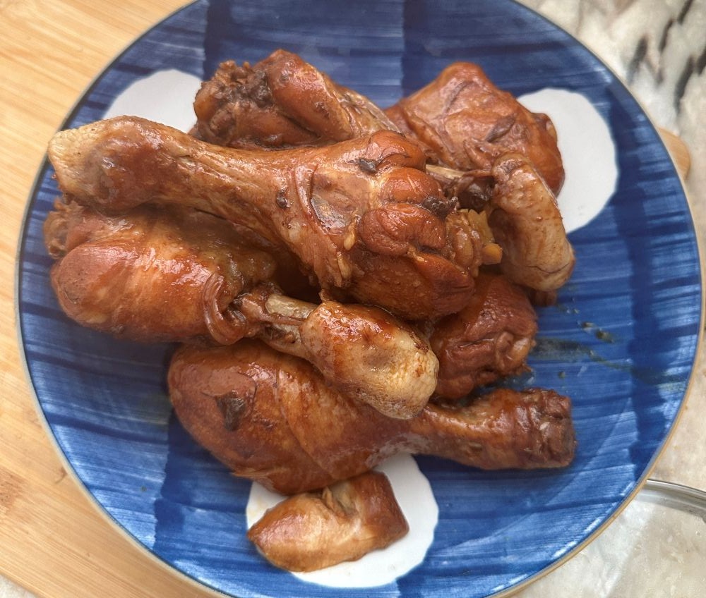 上图,卤鸡腿,双人份,换算成人民币的食材价格是:鸡腿30元。